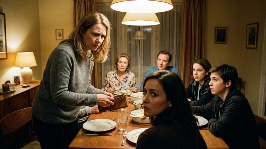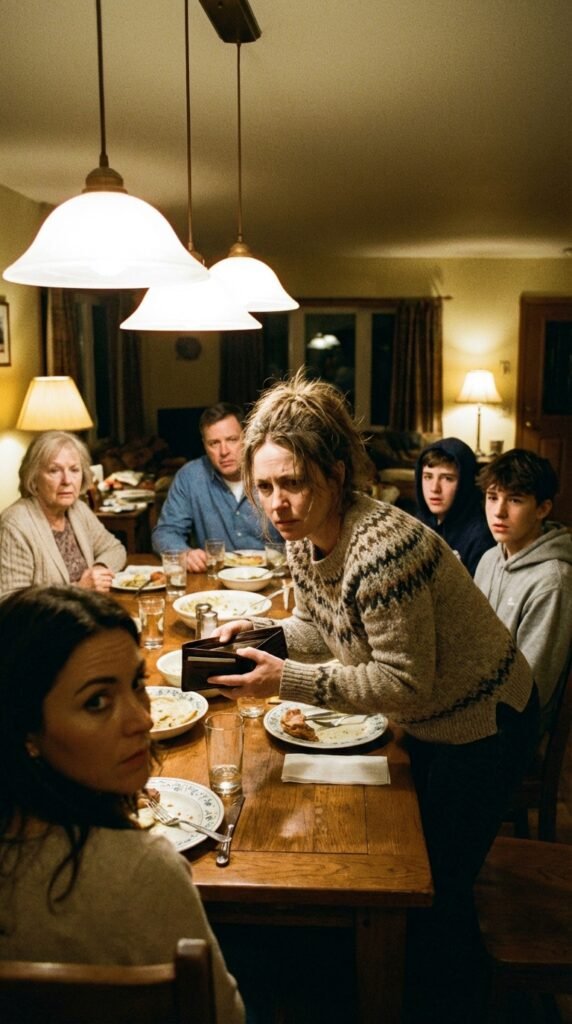 The room exploded. Arthur stood up so quickly his wine glass toppled, staining the white tablecloth like a spreading wound. Diane covered her mouth, her eyes brimming with tears of shame. Evan looked at the wallet, then at me, his face a mask of profound confusion.